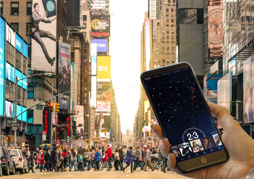 Press ‘search’ and your phone screen will now light up like a night sky. You will see little stars that pulse with different degrees of brightness, the brighter being the higher value matches.